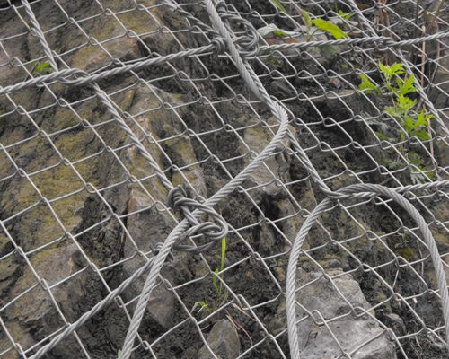 絞索網(wǎng)由高強(qiáng)度防腐鋼絲成索后編制,菱形網(wǎng)孔內(nèi)切圓直徑250mm,網(wǎng)片標(biāo)準(zhǔn)規(guī)格10x3.5m;